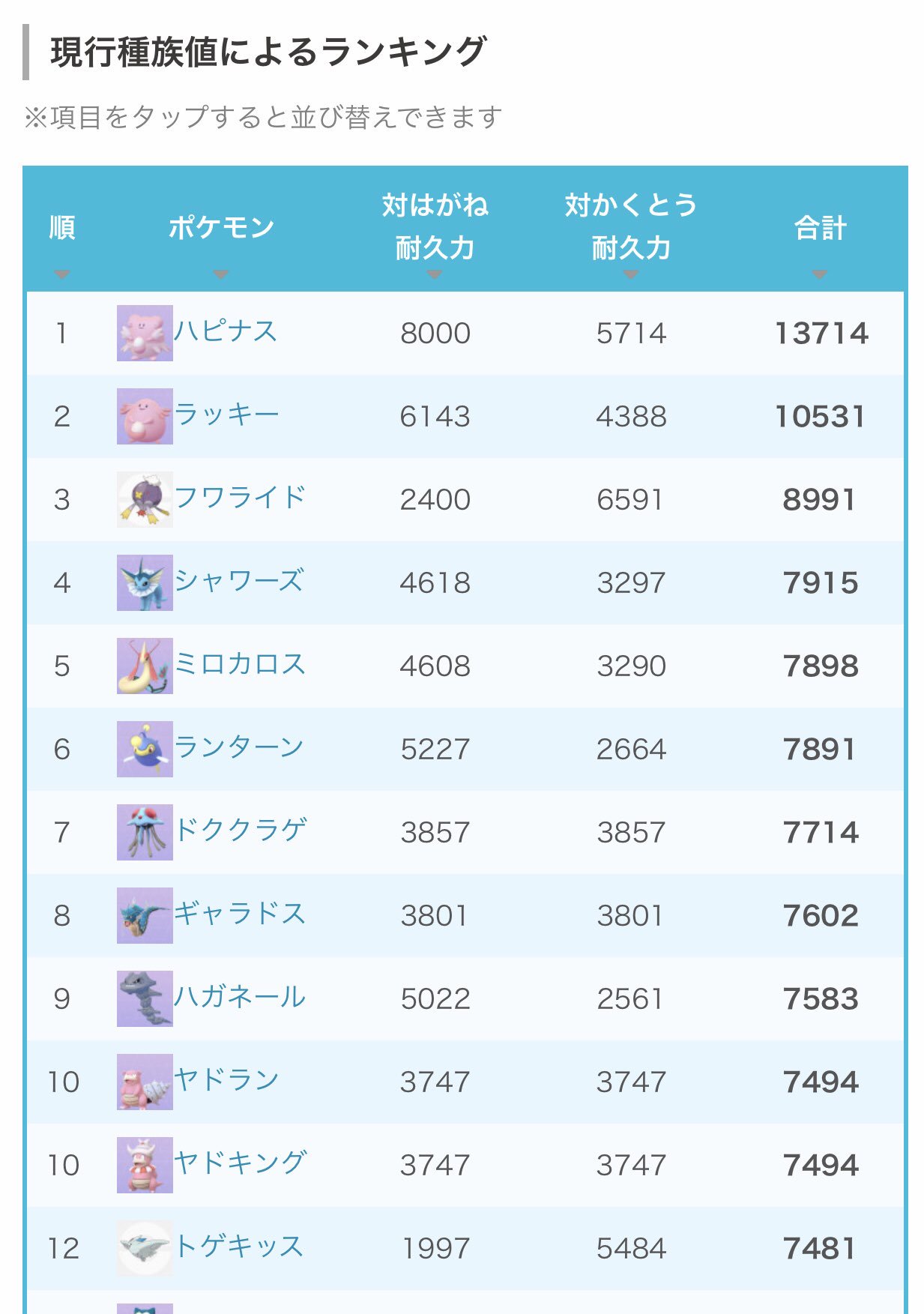 ポケモンgo 強いポケモンはどれ 種族値ランキング Hp編 ゲームクエスト